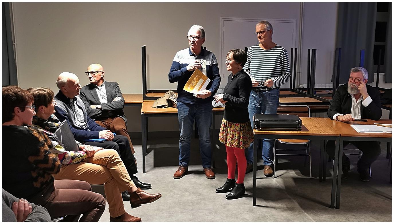 L'assemblée générale du Club qui s'est déroulée ce vendredi 8 décembre a réuni une majorité des 88 adhérents du club. Le président du CODEP et l'adjoint aux sports d'Avranches Christian Cossec ont participé à cette manifestation..Le président du Codep a récompensé Guy Anfray pour son dévouement dans le cadre du balisage des chemins VTT du sud Manche. Christian Cossec s'est engagé à participer à une prochaine réunion sur la sécurité à bicyclette.